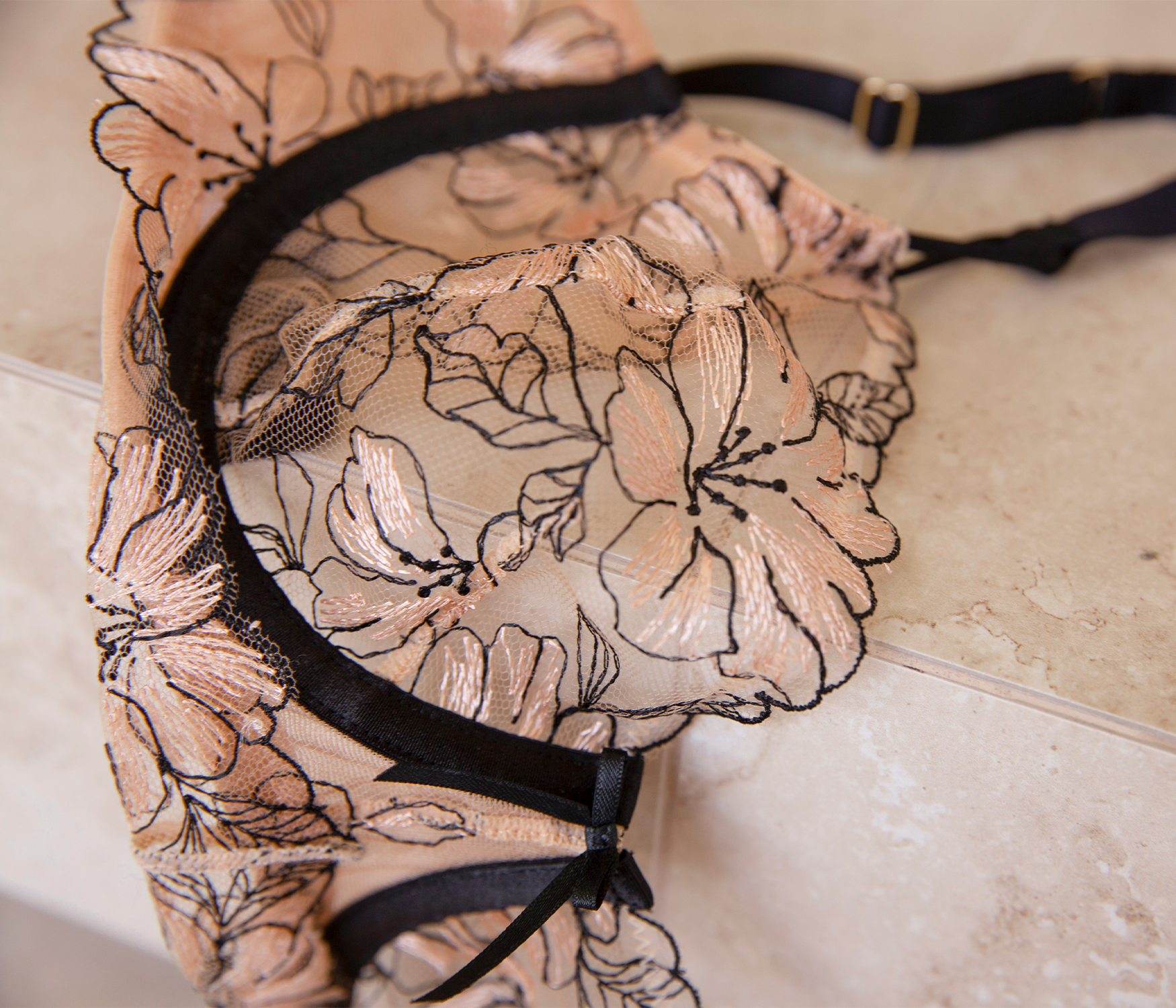 Here, classic floral motifs enter the contemporary, punctuated with a lightly shimmering sheen and contrast by linear trims that are anything but saccharine. Including a decolletage-flattering Balconette style, supportive Soft Cup design and bikini and boyleg briefs to match.