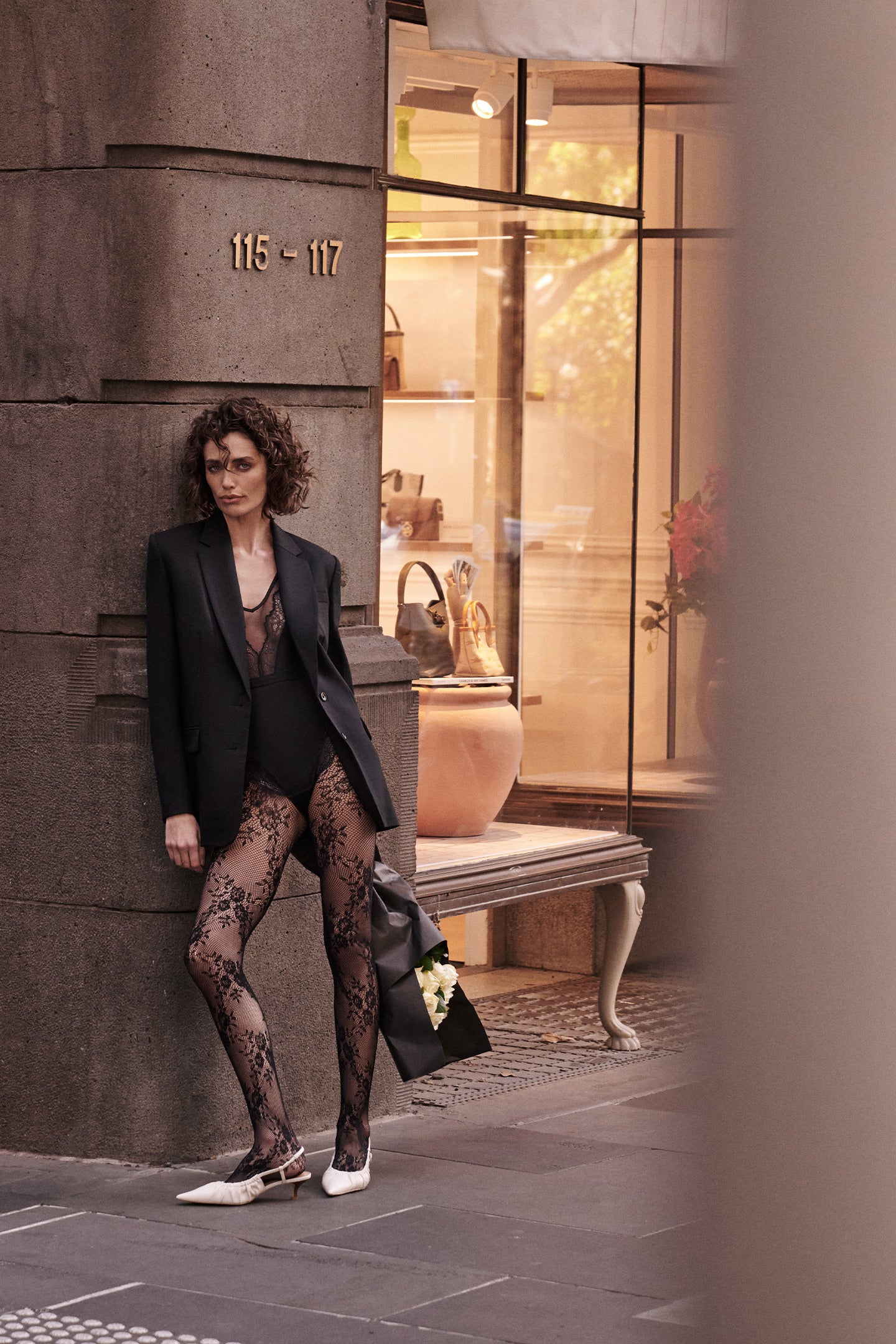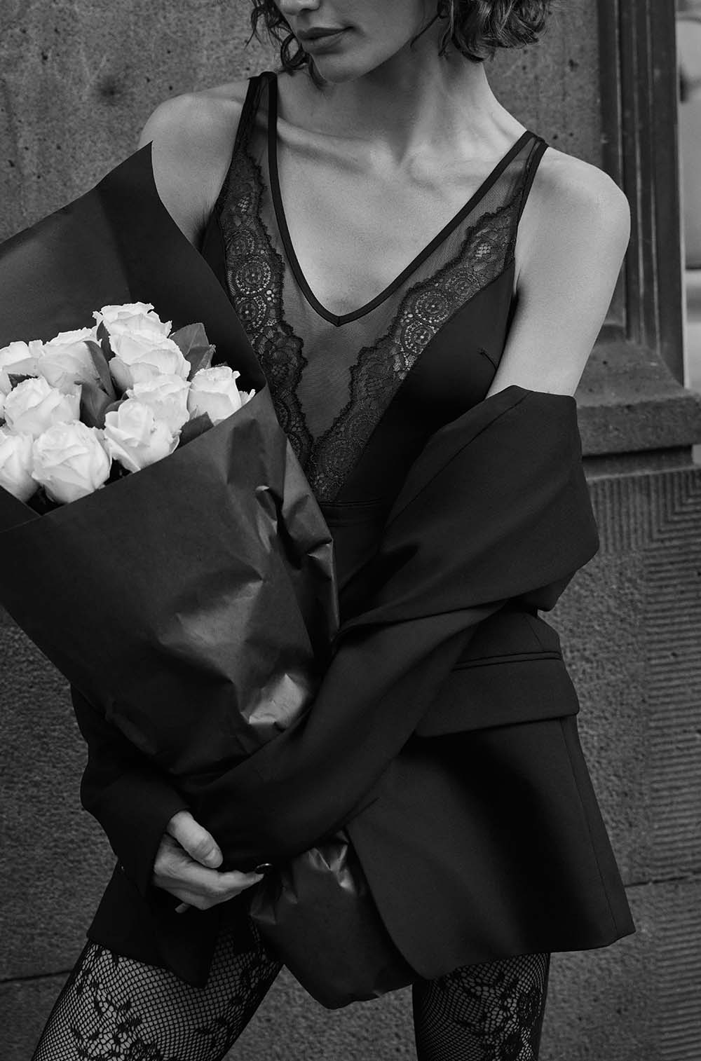 Complement with signature Amour Lace in a Bodysuit to reimagine underwear as outerwear. Use as a layering piece to expose necklines and create shape, maximising the potential of wardrobe mainstays such as denim and tailoring through the addition of feminine flair.