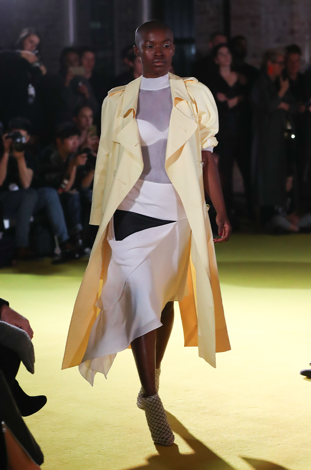 A particularly striking element to the coordinates of the show was the messaging behind the juxtaposition of elements that collate to Esber’s designs; sharp masculine tailoring highlighted with intricate and sheer feminine details, paired with bold colours. Women wearing what they want, when they want.