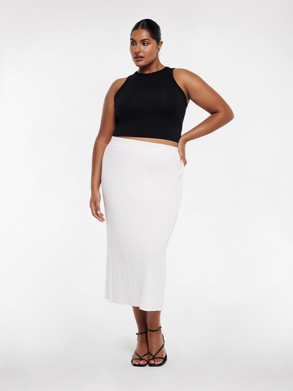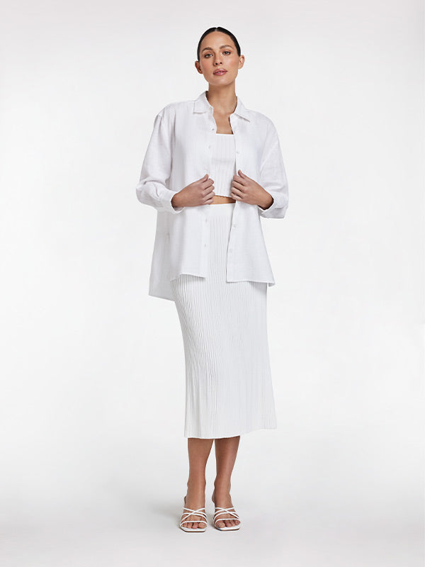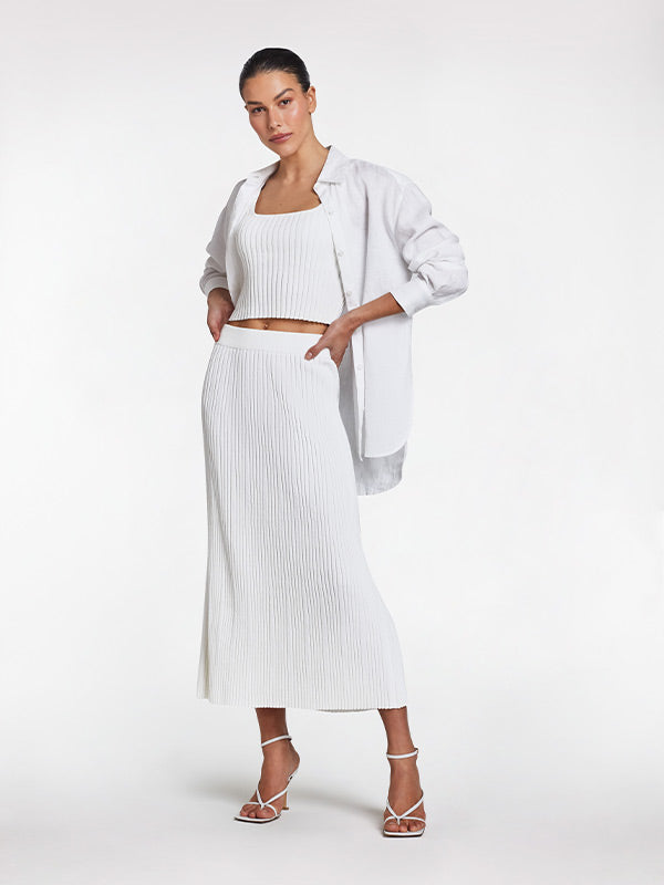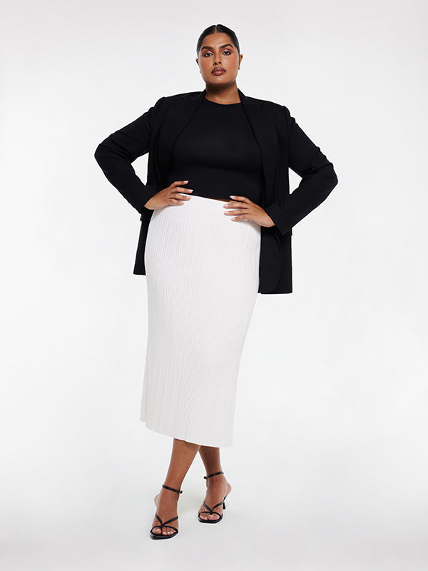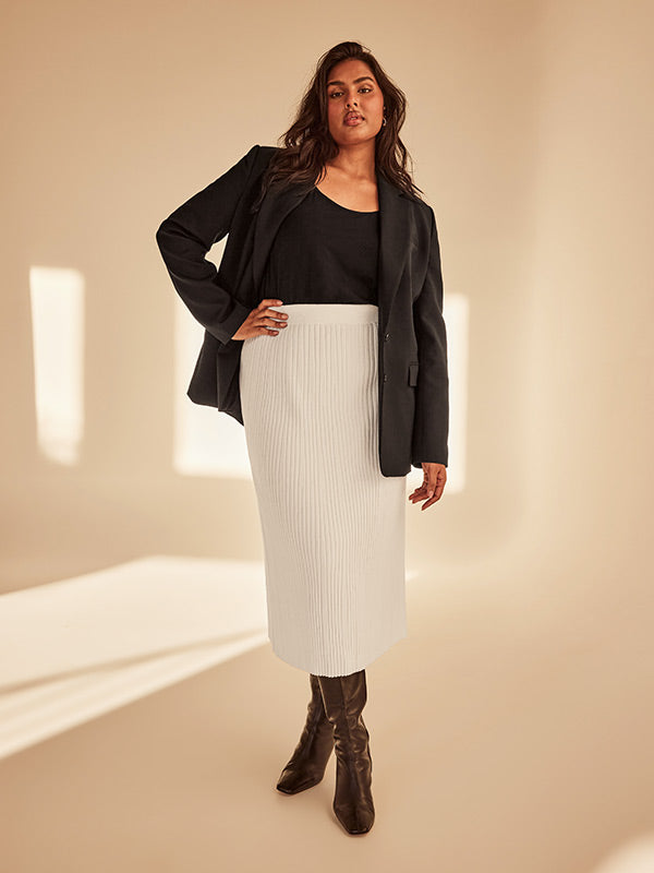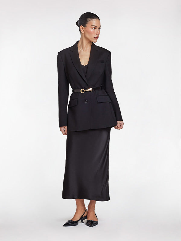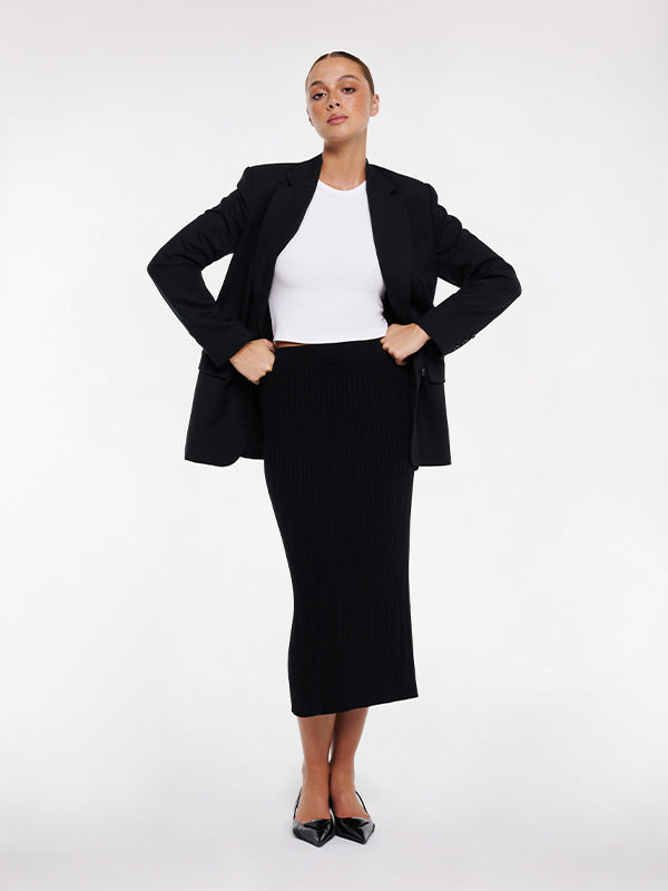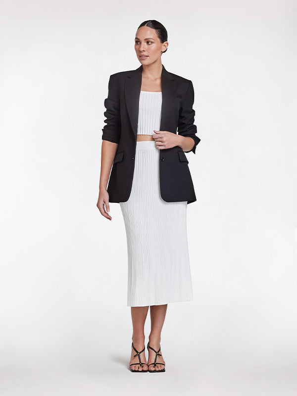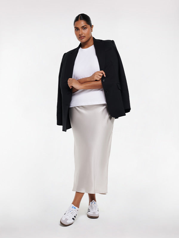 A polished separate delivering wear with everything appeal, a day-to-night skirt balances the structure of a capsule wardrobe with fluidity for femininity without compromising on comfort.