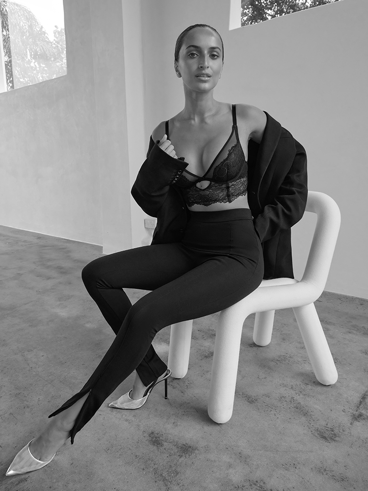 Captured on location at Mylky Space, a blank canvas punctuated by just the right amount of personality through cult contemporary furnishings and minimalists finishes, this comprehensive collection reflects that same yearning for modern simplicity in the curation of a lingerie and Livewear® Capsule to serve the wearer.