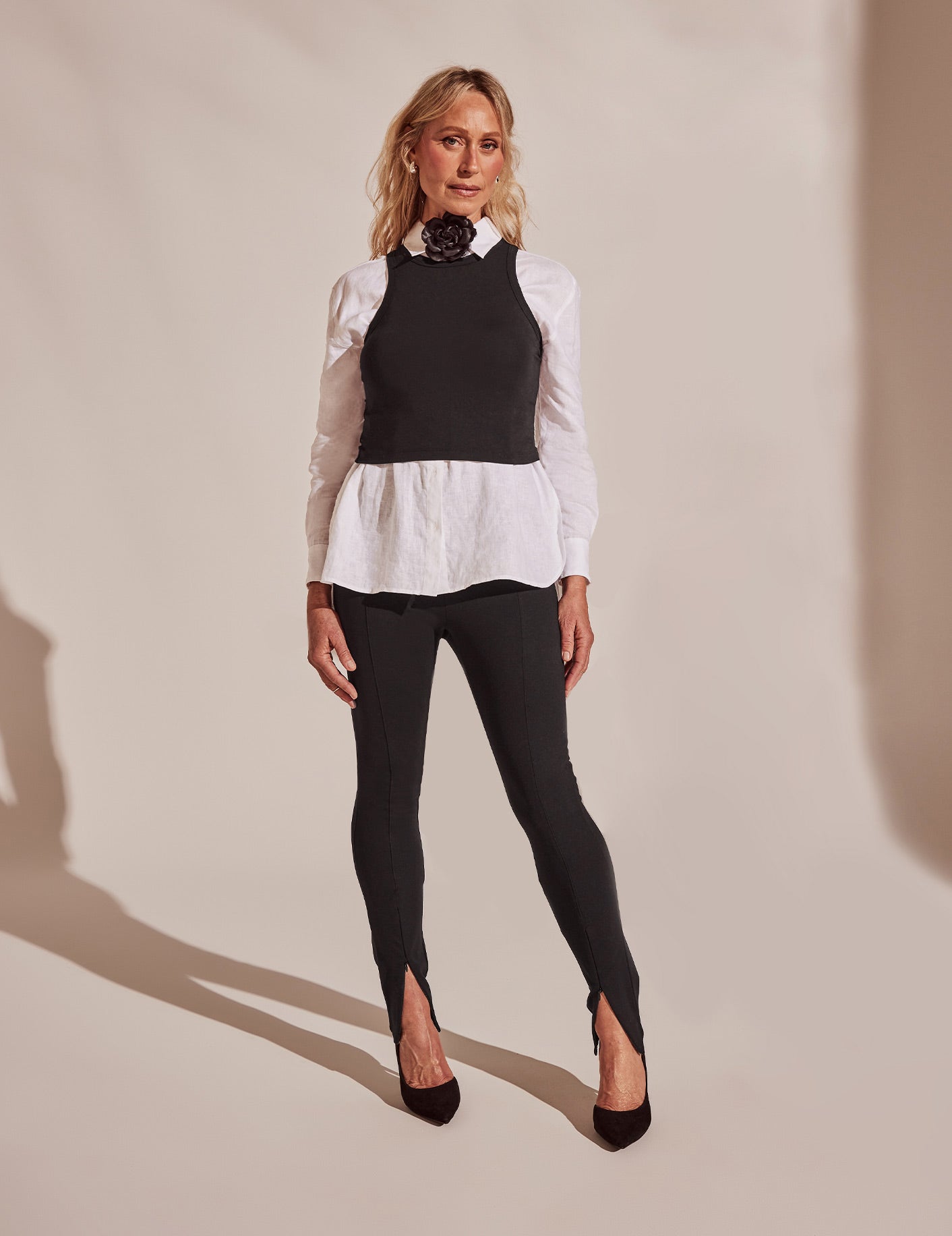Layered with sleek essentials for a dynamic after-dark aesthetic.