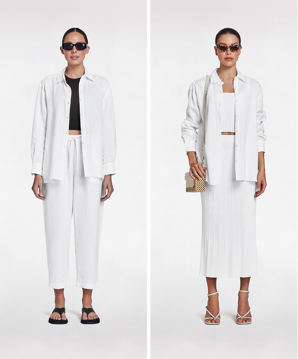 Enter Intimo's Linen Capsule; a three-piece collection of timeless separates designed with superior linen crafted to provide more structure and shape than traditional linen without compromising on breathability or comfort.