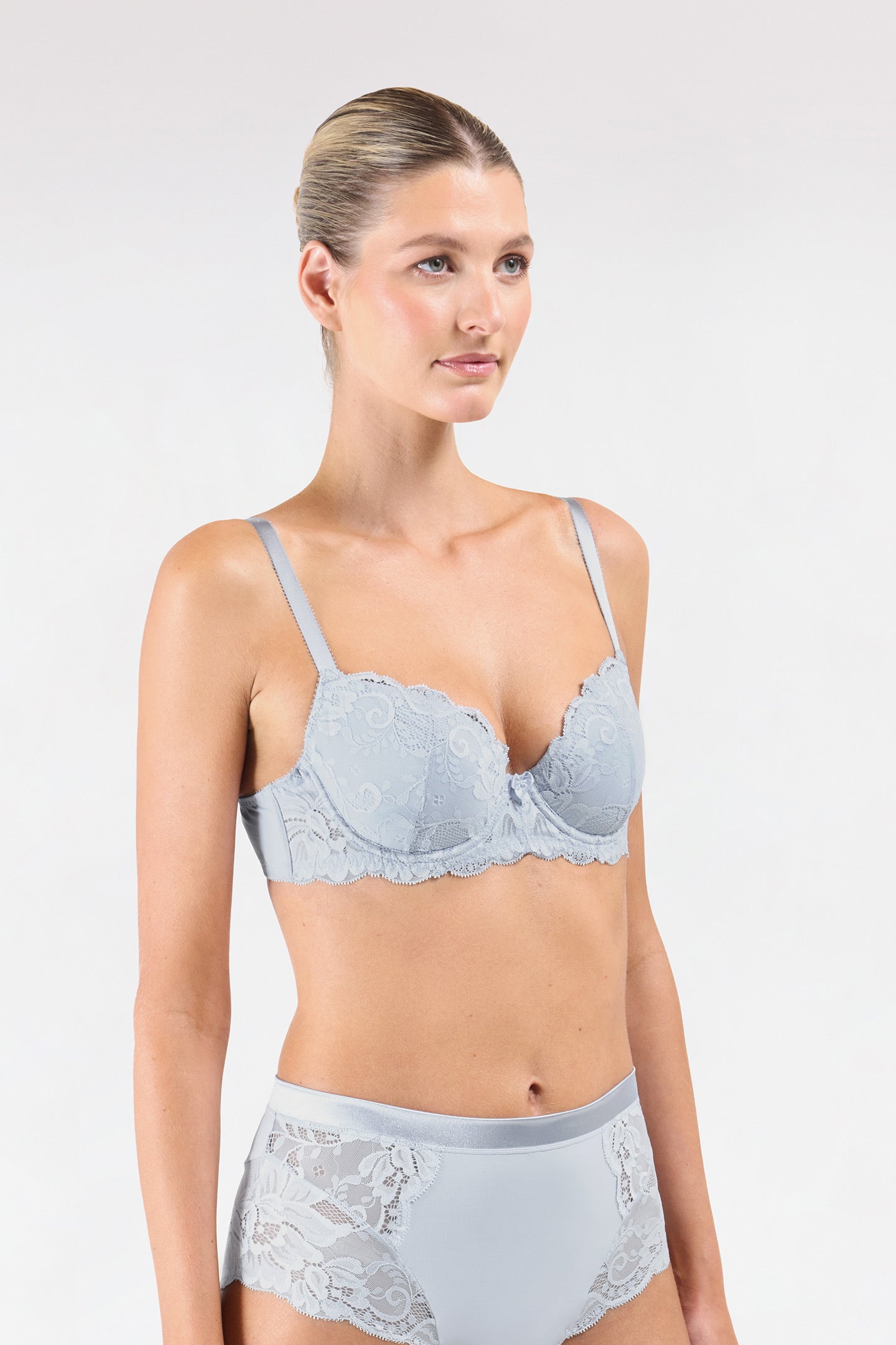 - Standard satin straps for A-C cups, additional coverage at strap apex for D-E cups to encapsulate and support