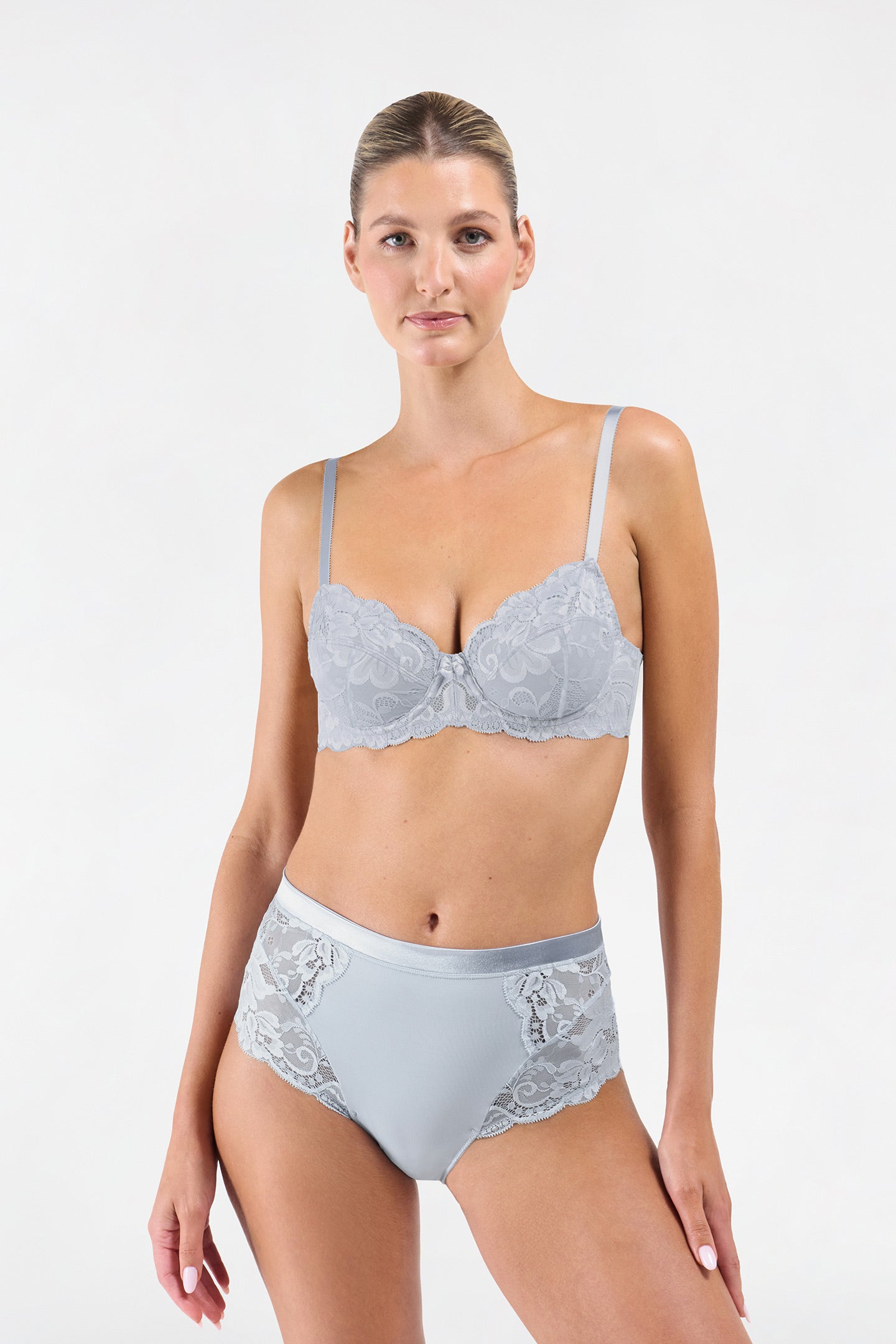 - 3-piece cut and sew cups lined with mesh for secure hold