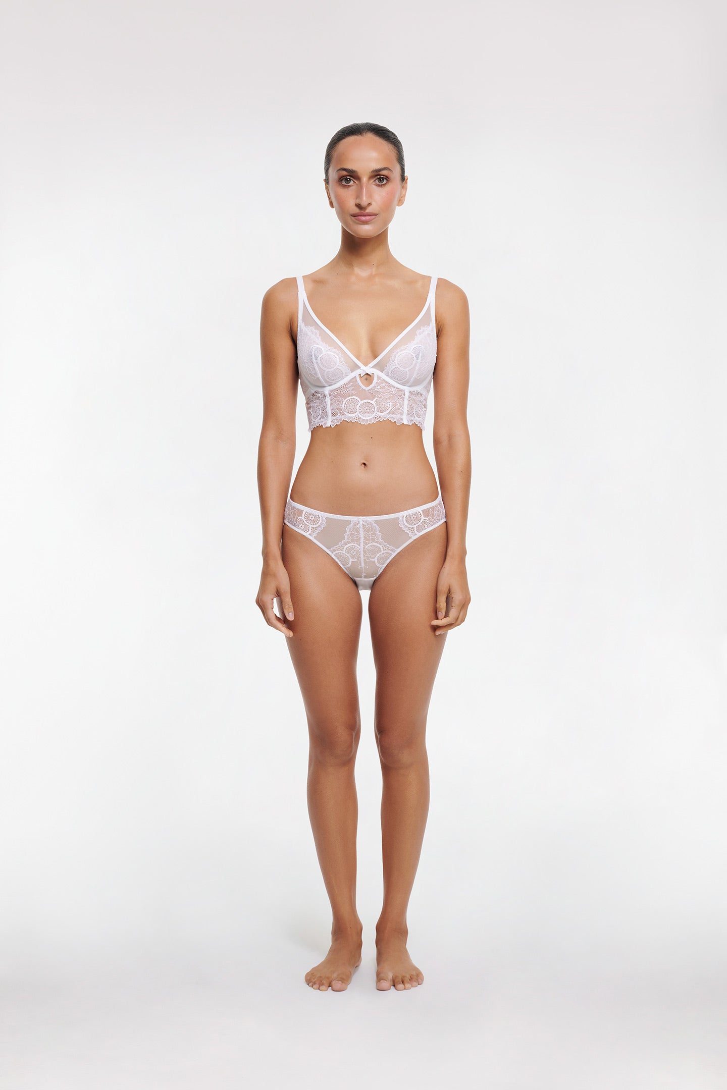 - Scalloped lace at back leg