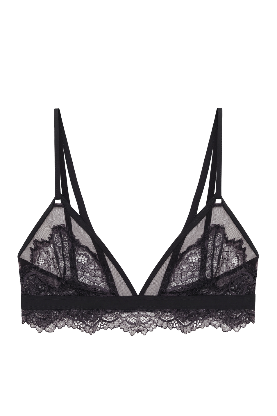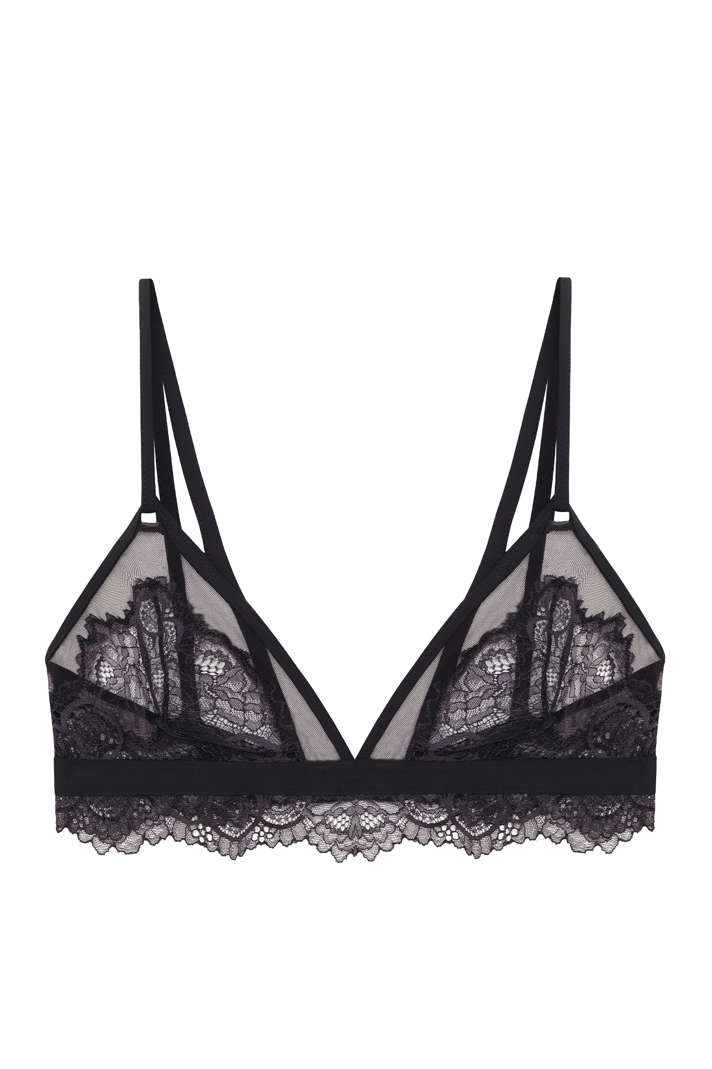 - Wirefree triangle bralette with lace and mesh panelling and soft microfibre edging.