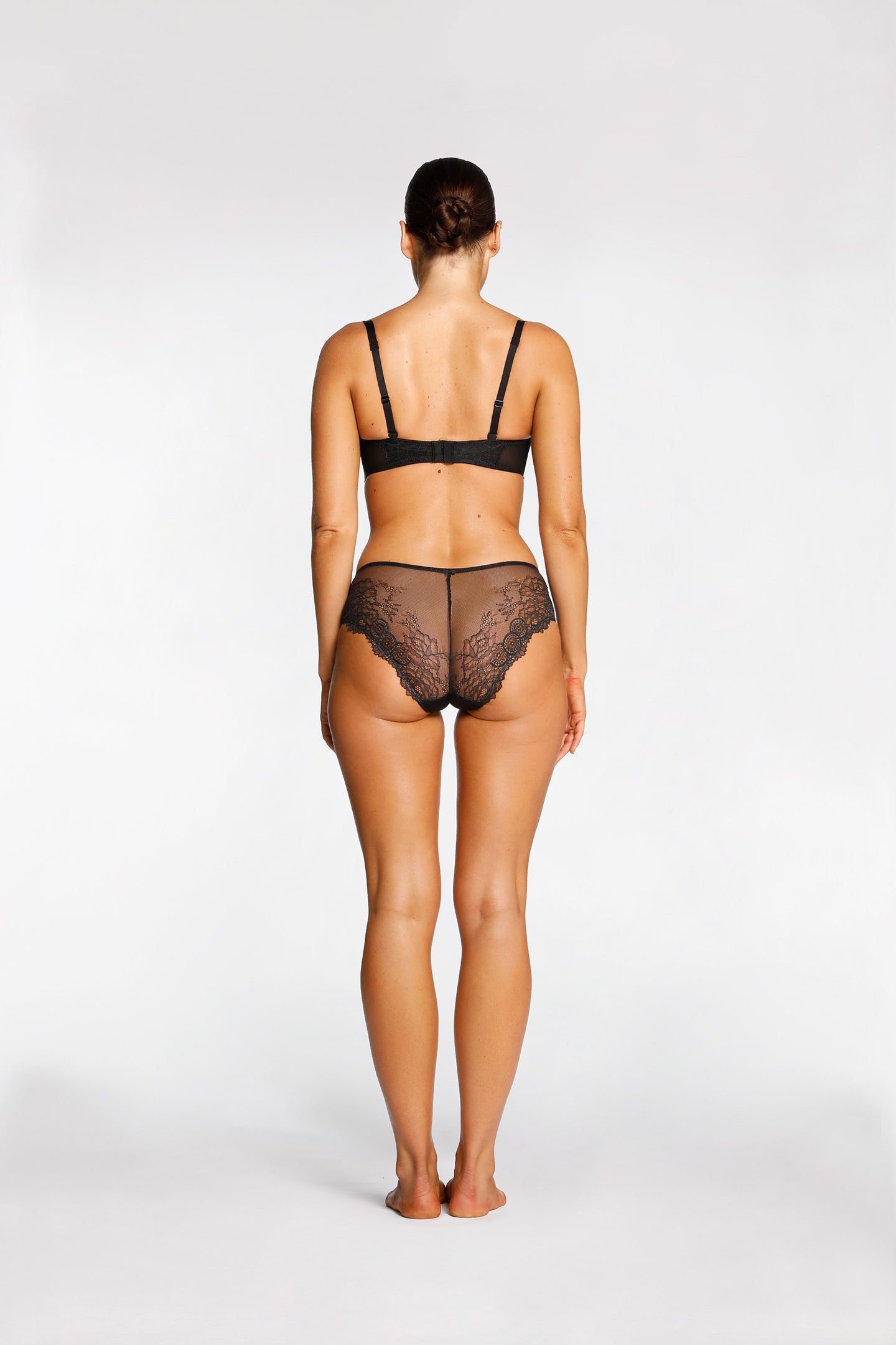 - Contrasting mesh and lace detail at back