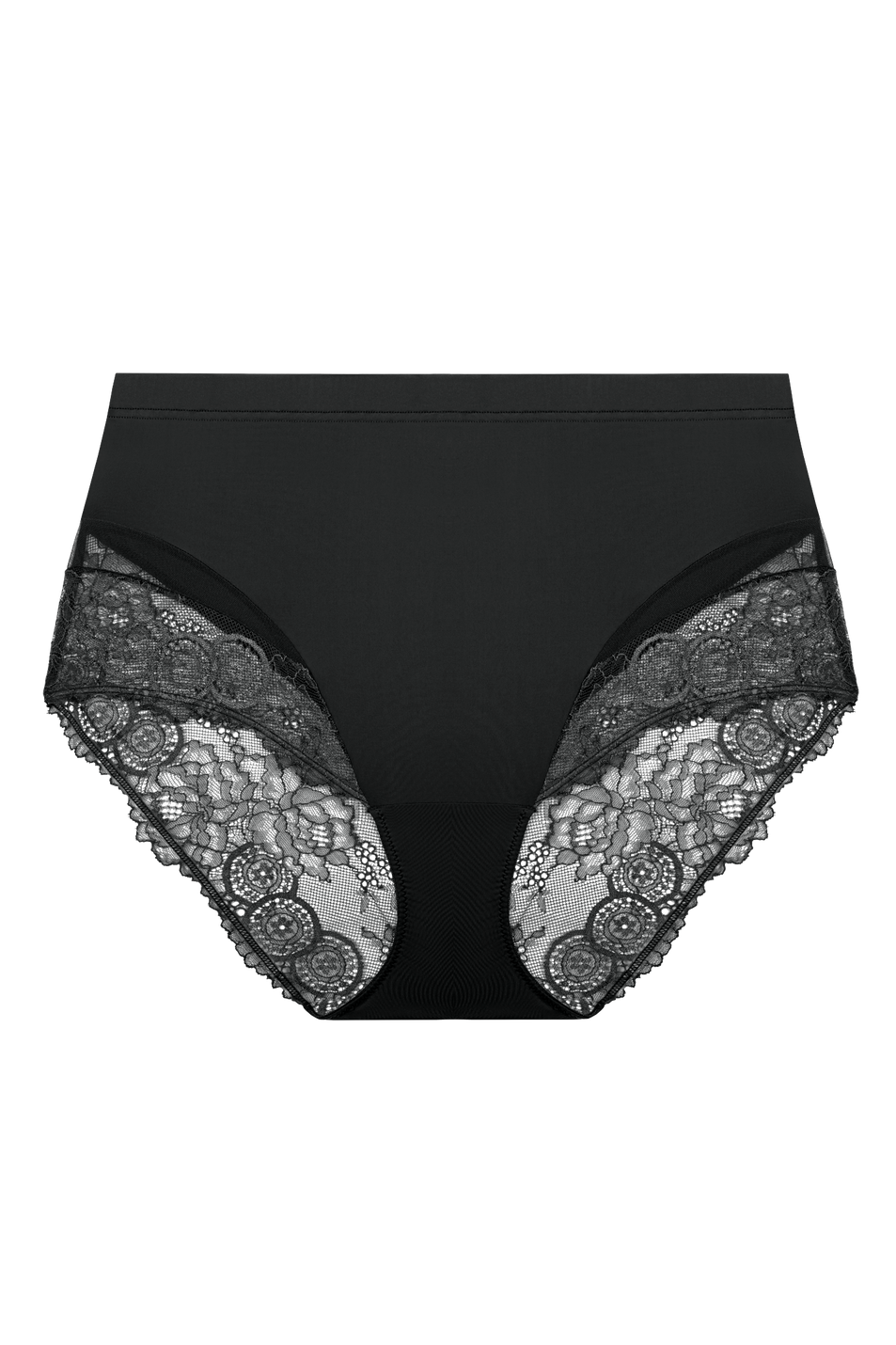 - Sits at true waist with wide band for comfort