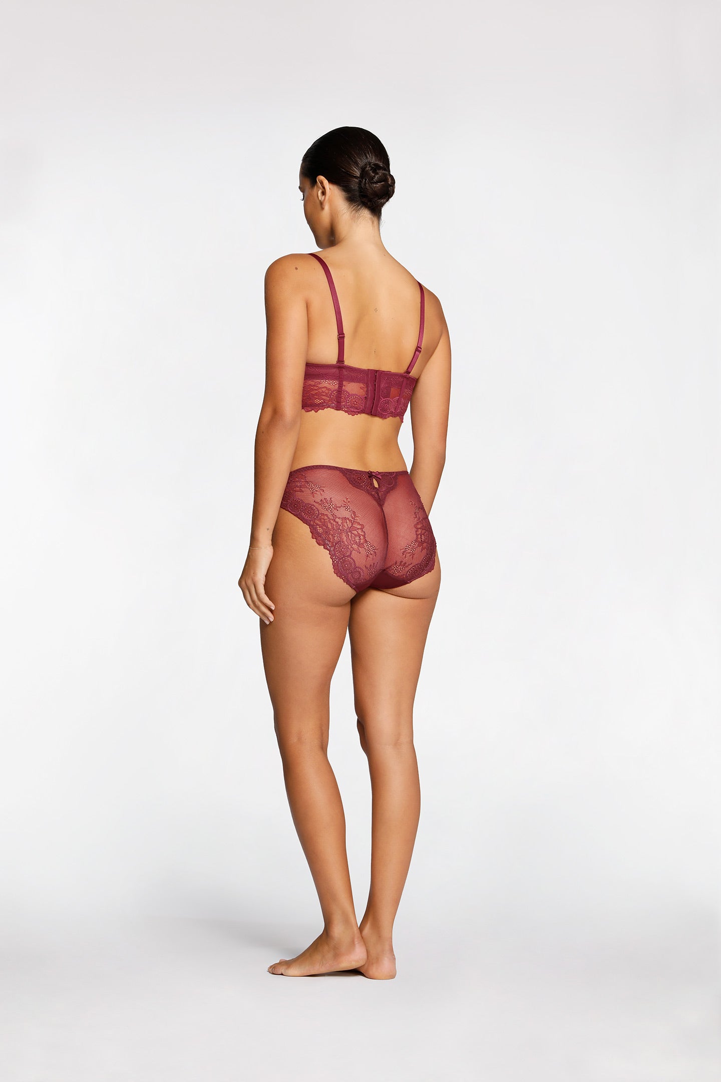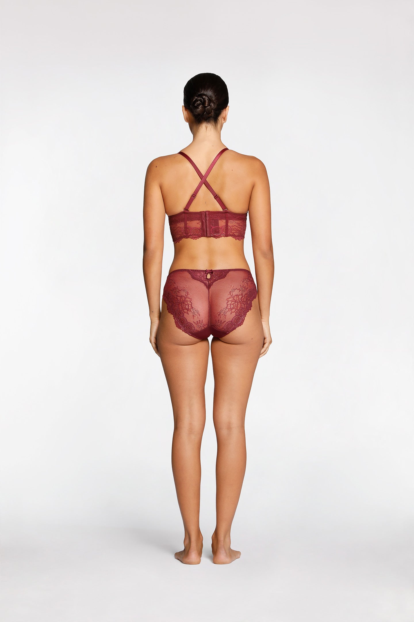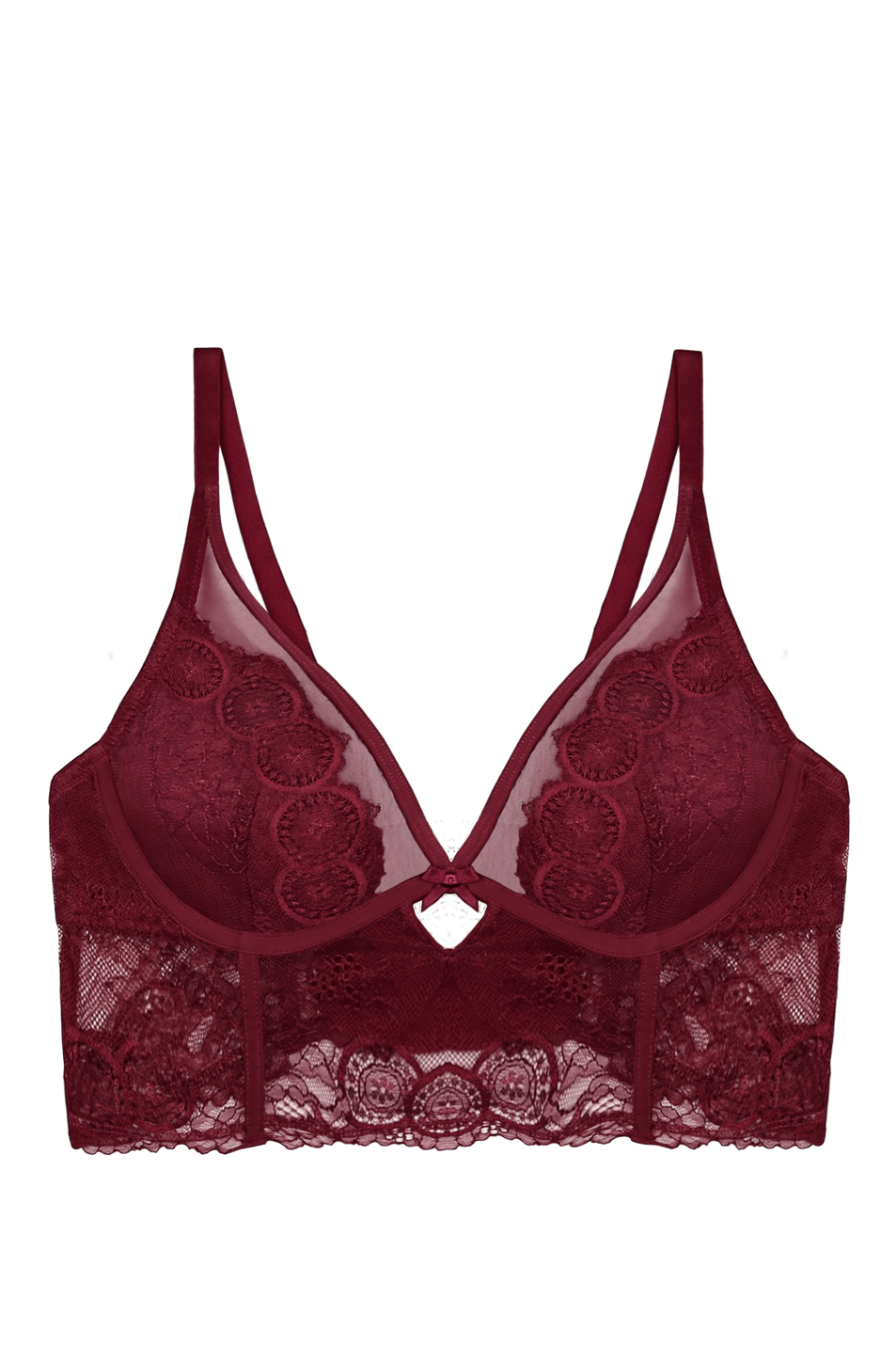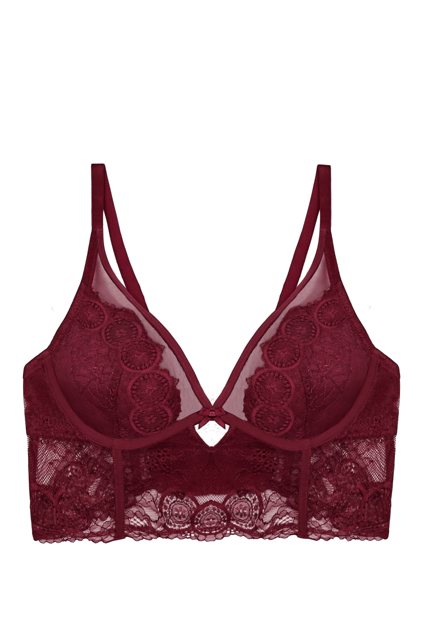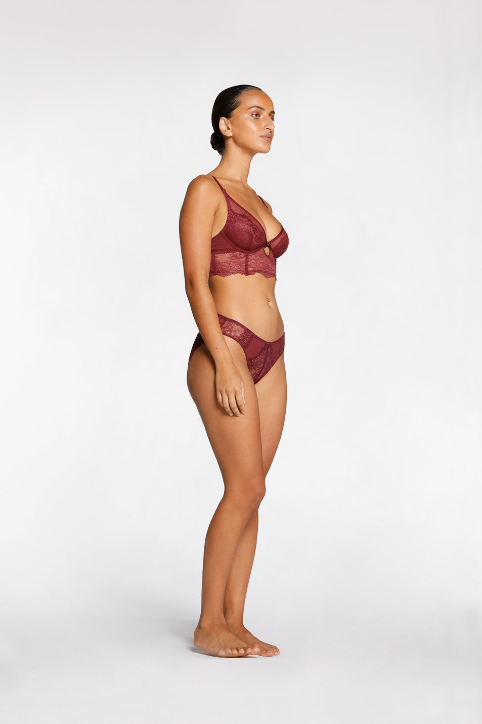 - Soft stretch Amour lace cups with clean mesh + binding neckline