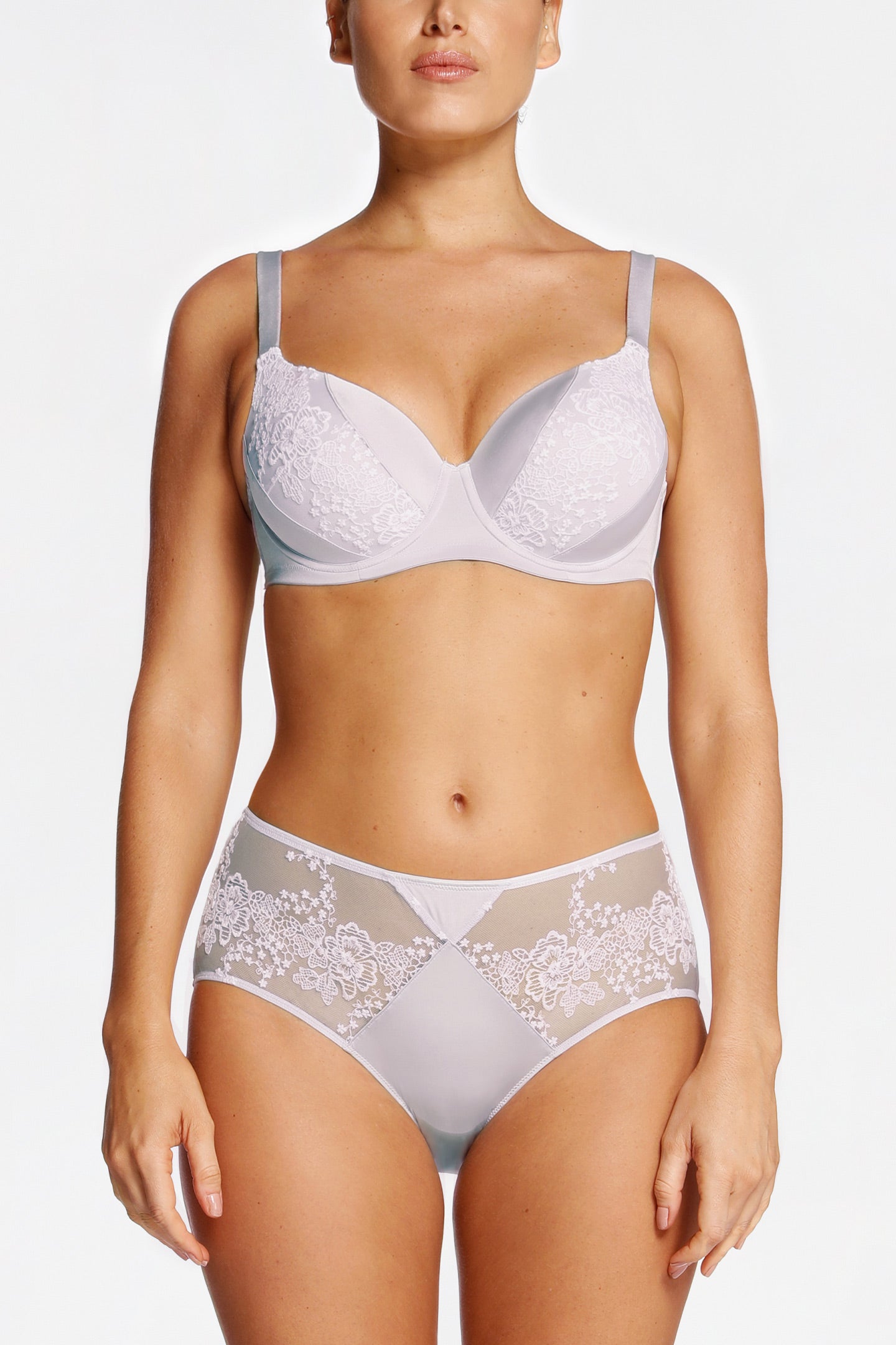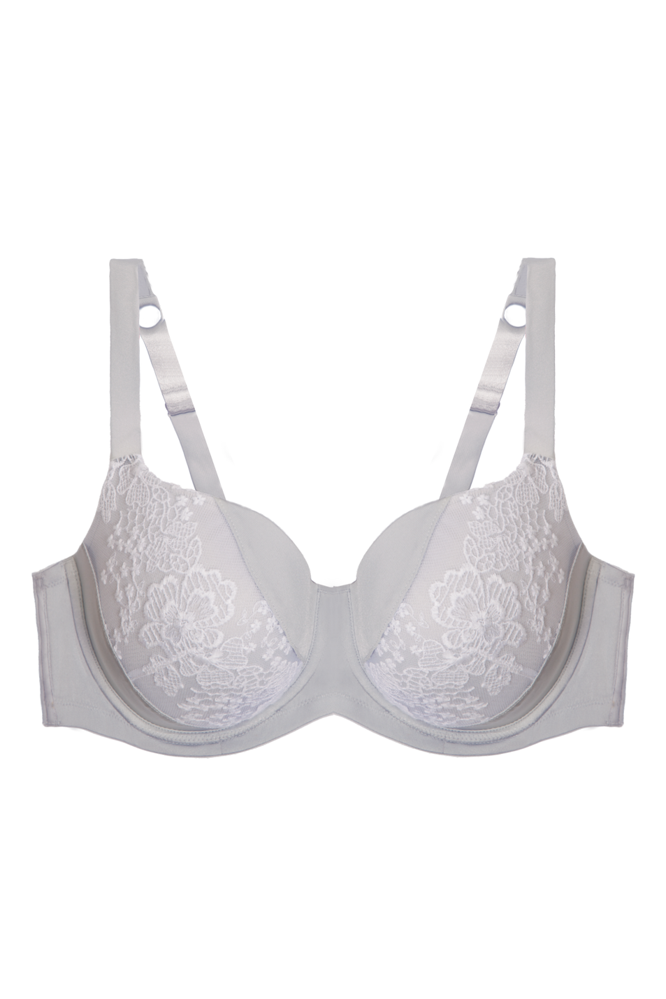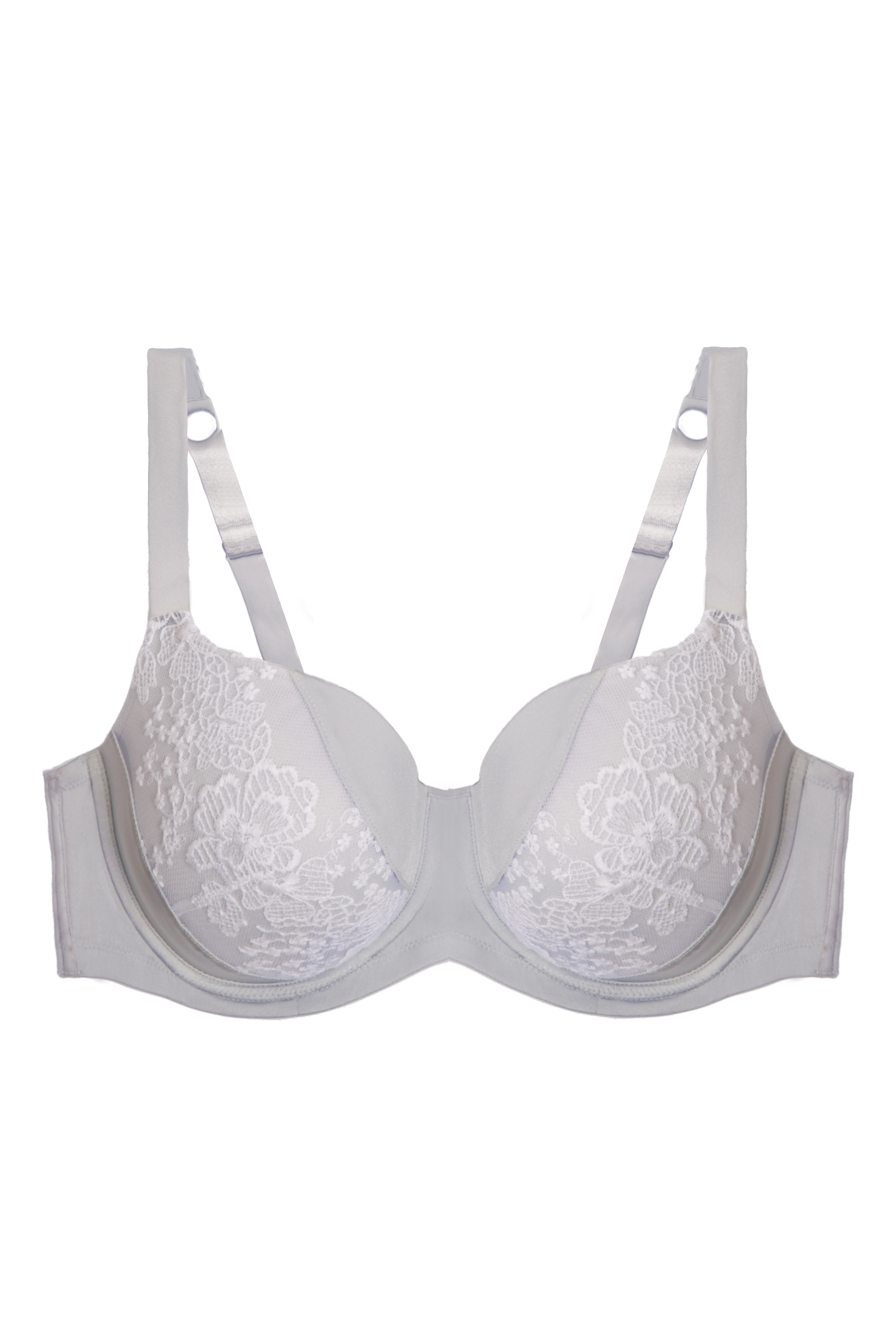 - ¾ coverage cups with floral embroidery overlay