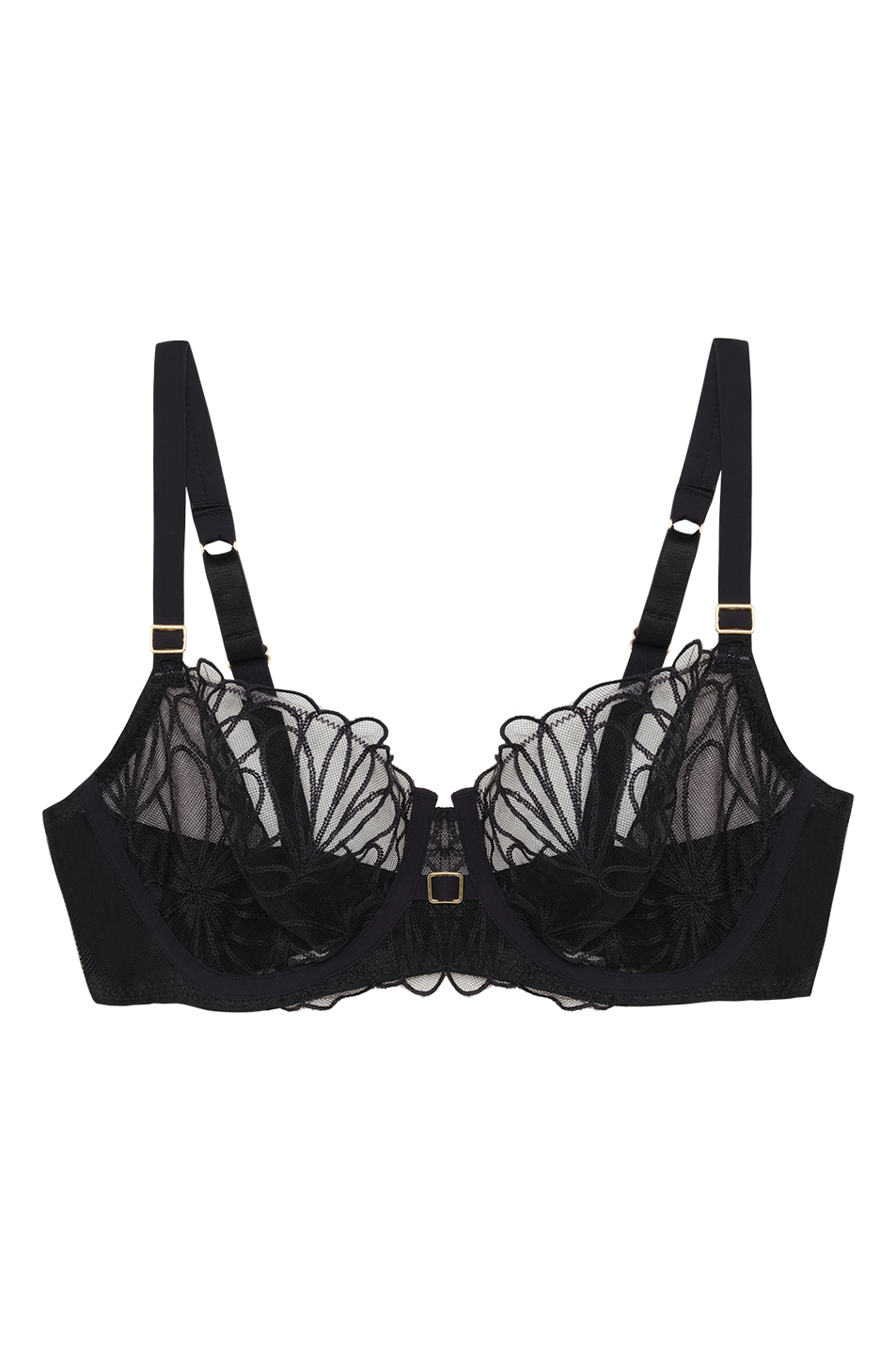 - ½ coverage sheer fabric cups with inner sling for support and natural projected shape
