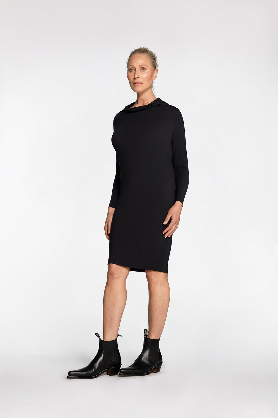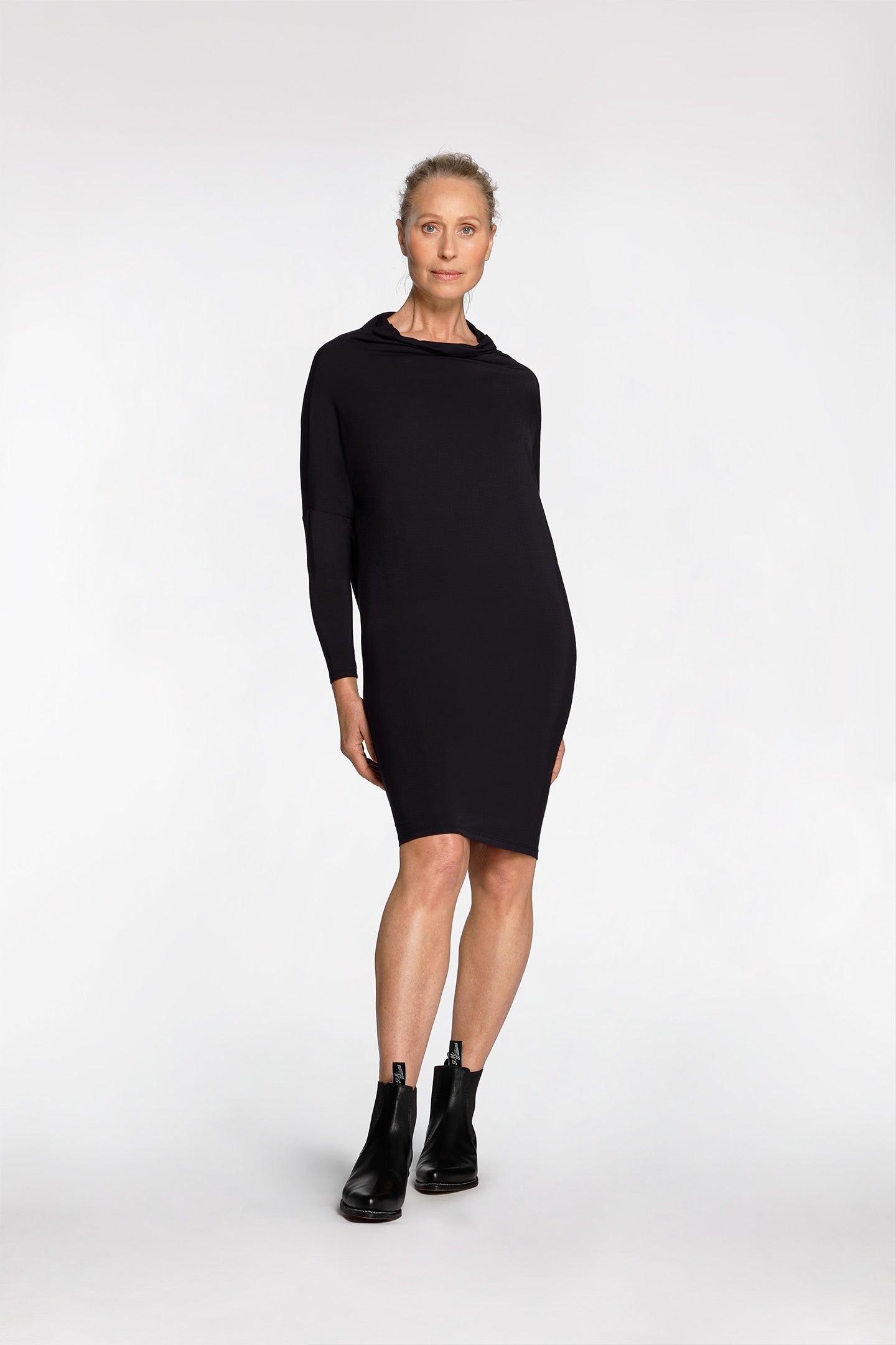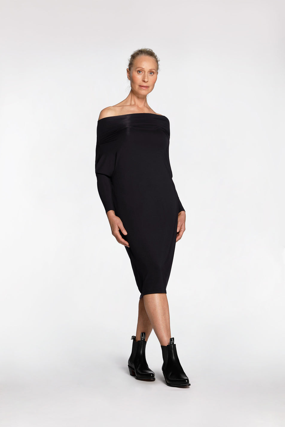 - Straight body shaping with long sleeves to style as a classic long sleeve, one shoulder, halter, strapless or tie front dress