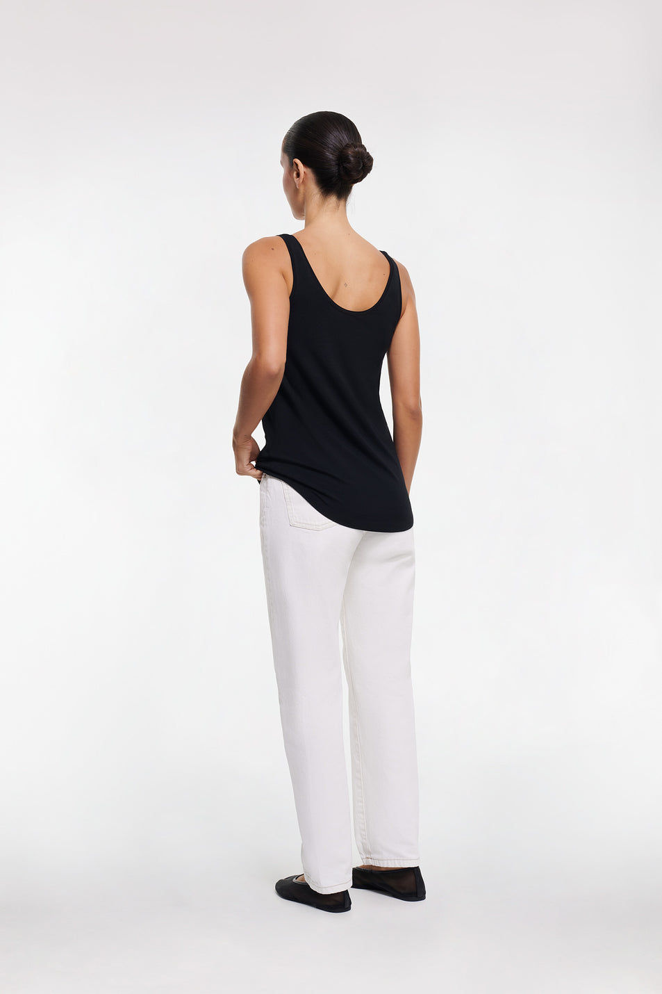 A year-round wardrobe style staple with two-way neckline for wear as a scoop or v neck. TENCEL™ Modal + Micro and shaped hemline make for easy layering.