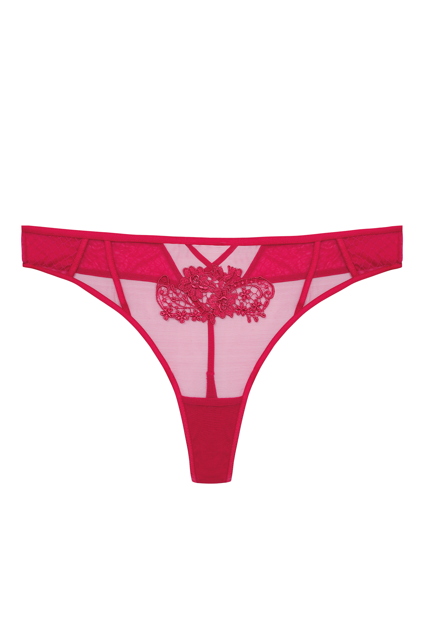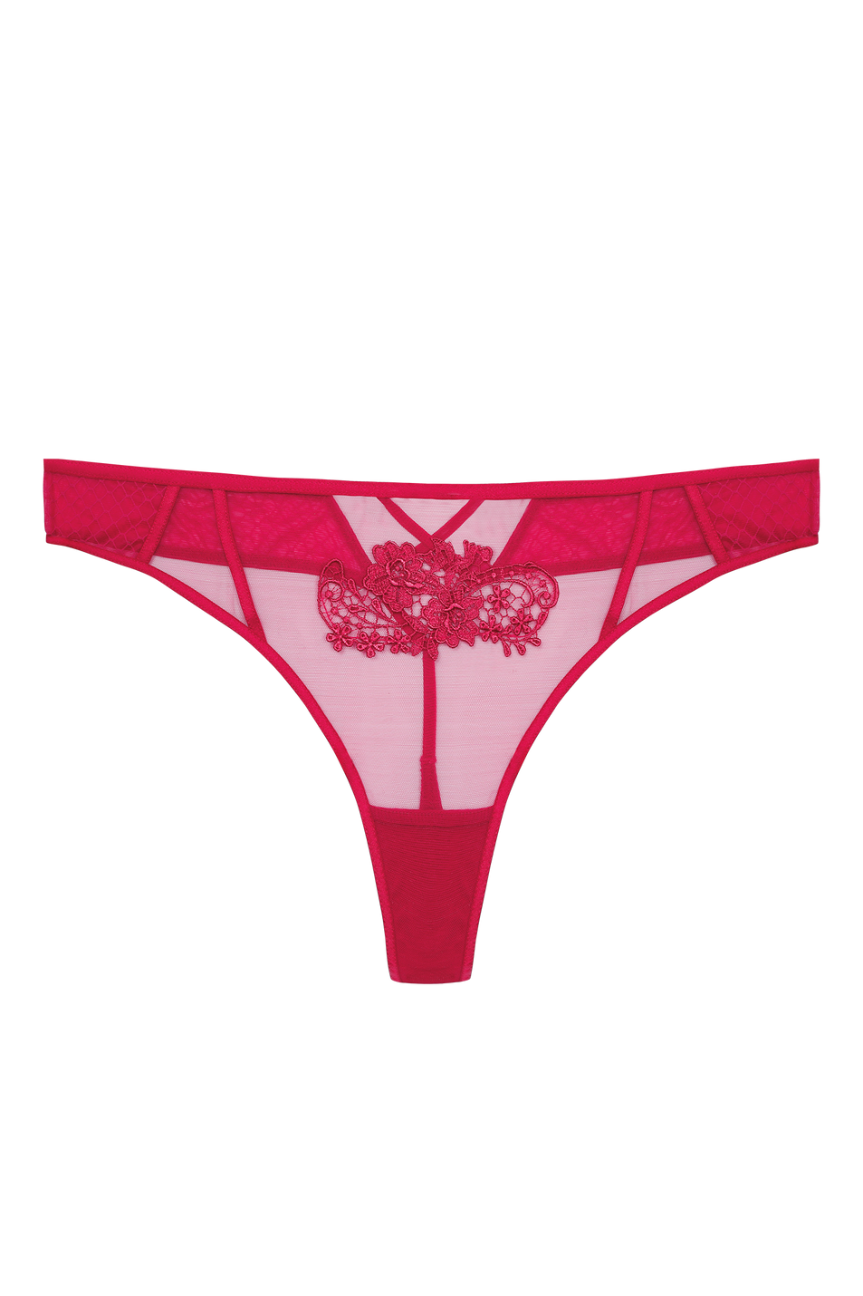- Sheer mesh front with guipure lace motif
