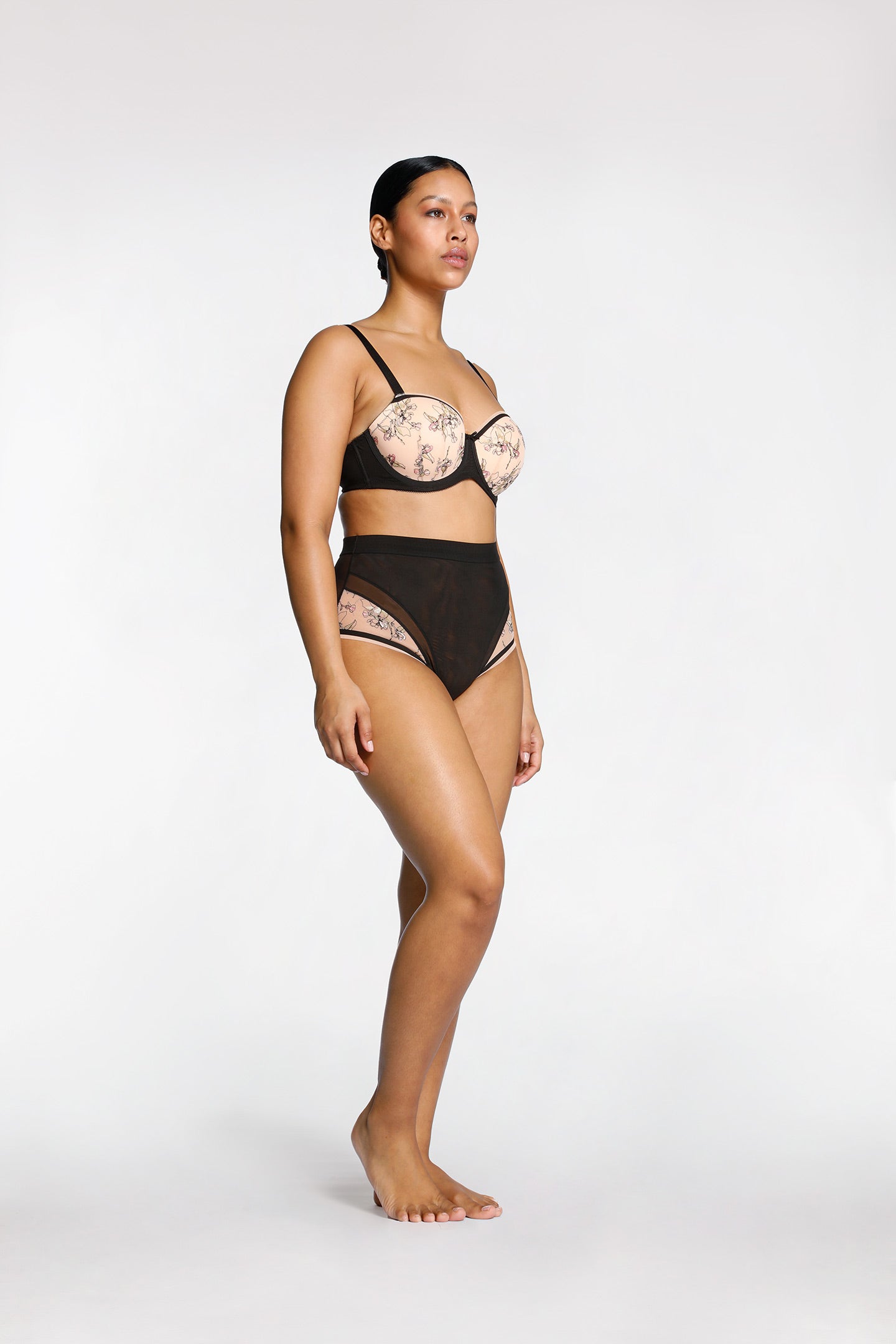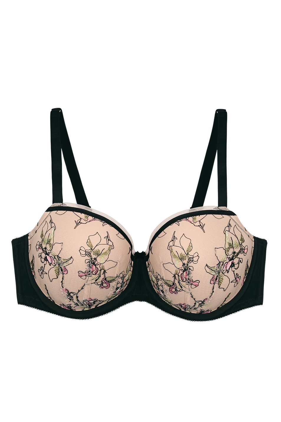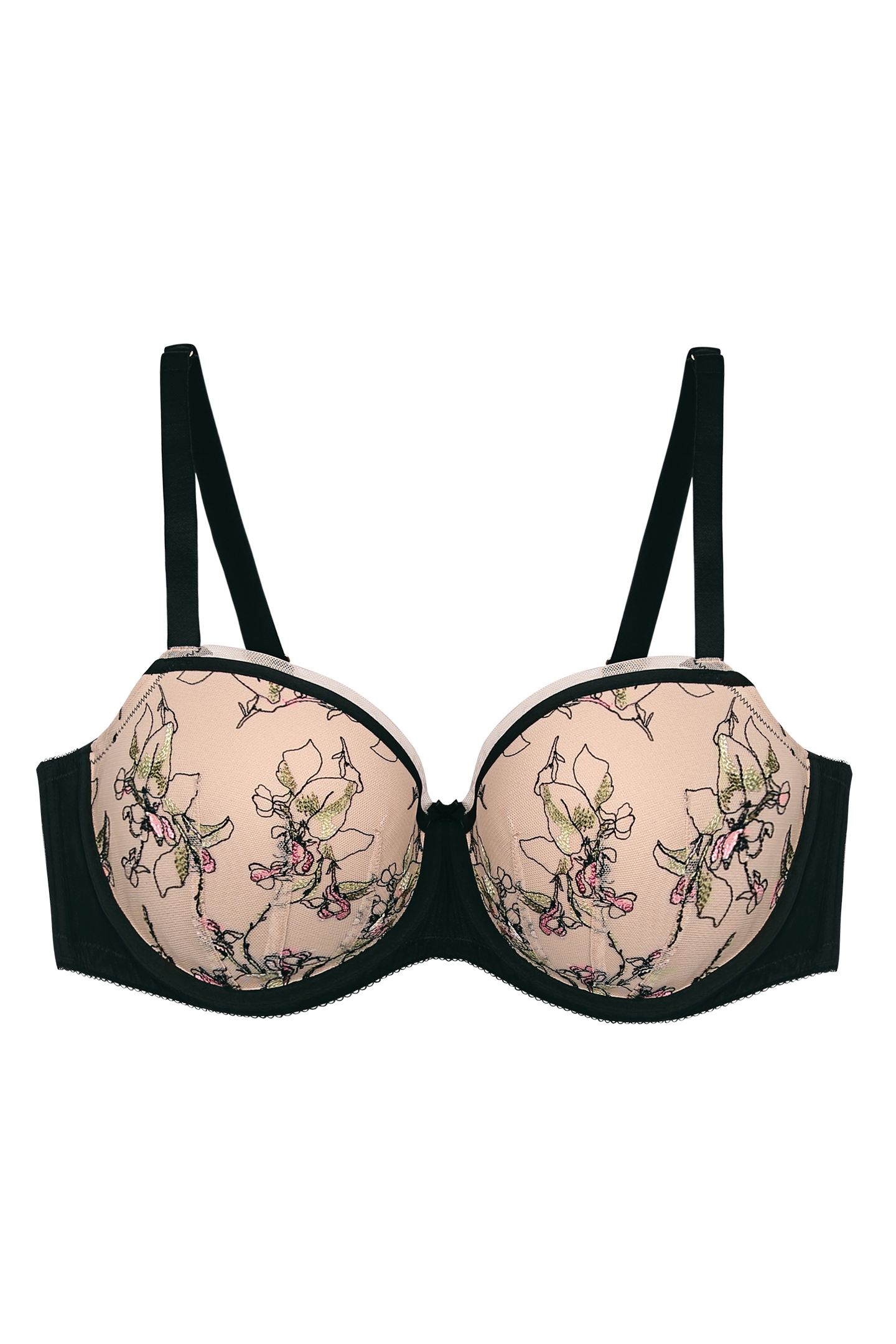 - ¾ coverage cups with embroidery overlay