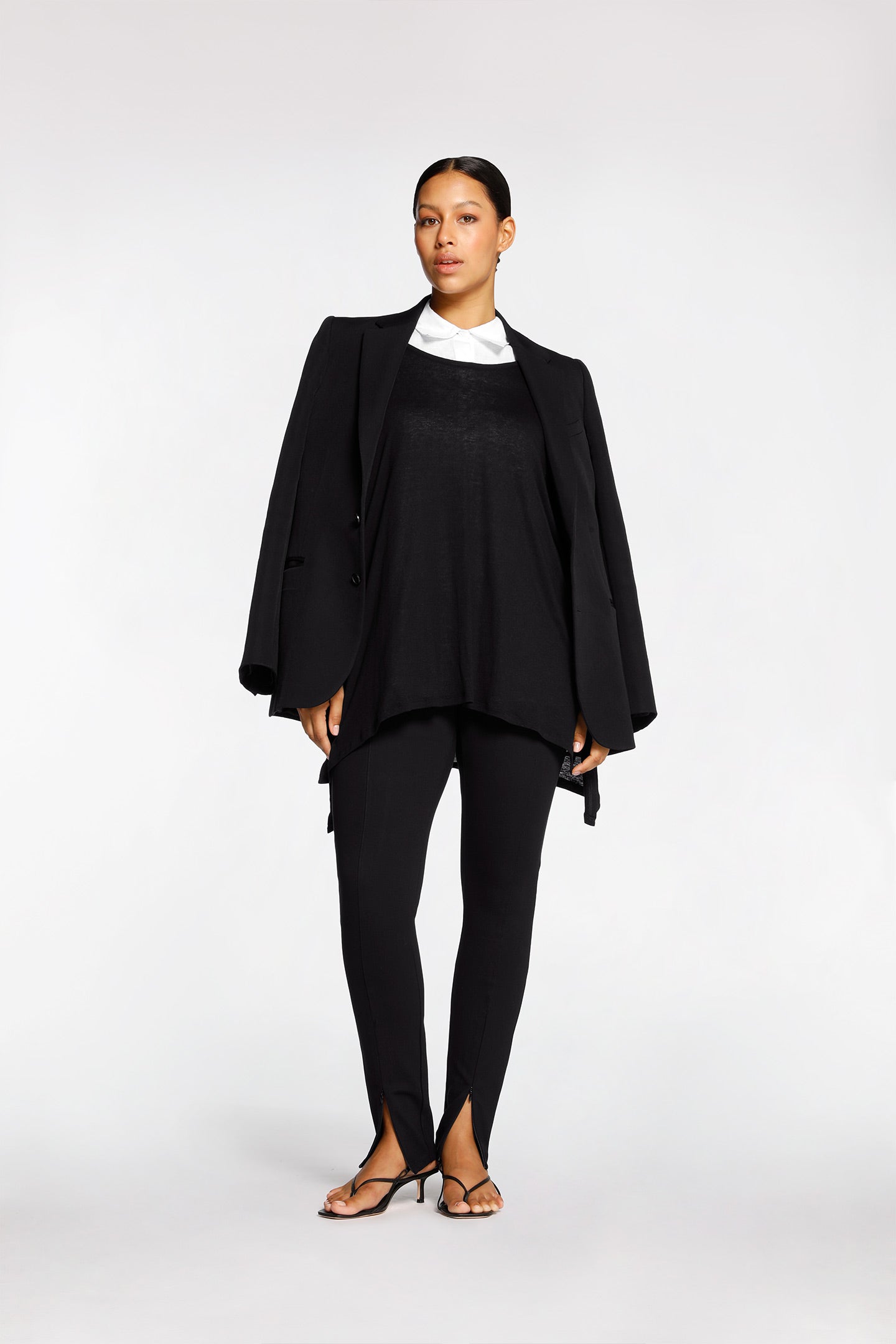 - Side splits at hemline