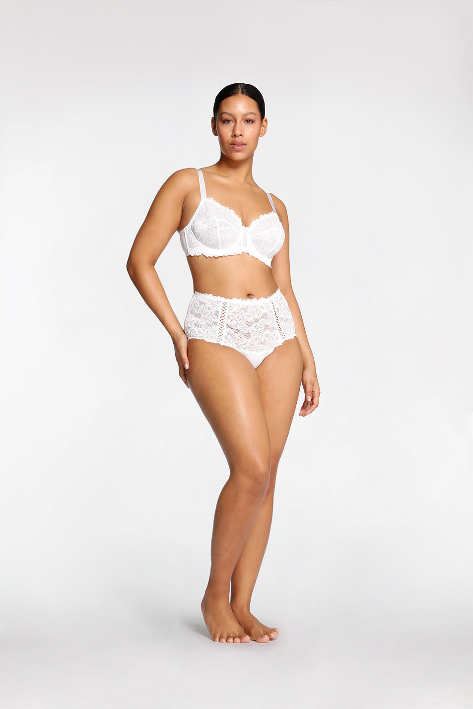 - Full lace cup coverage