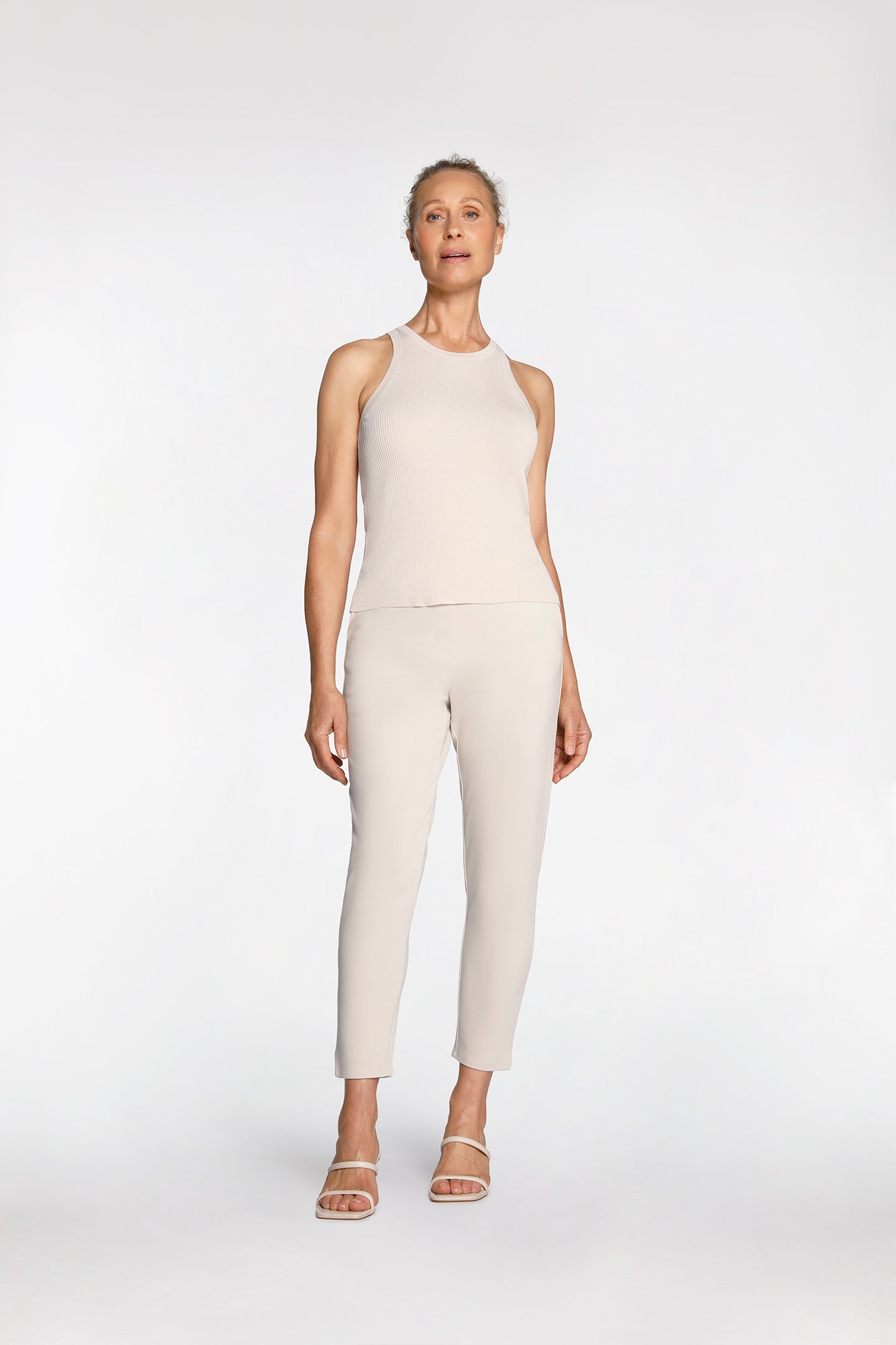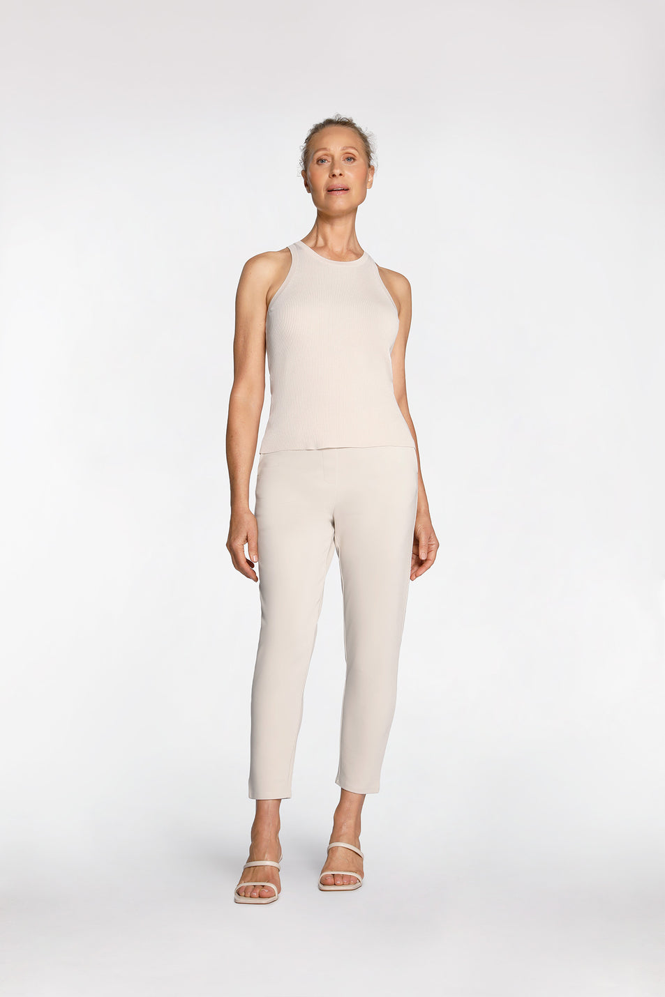- Soft 2x2 viscose/nylon blend rib that skims the body