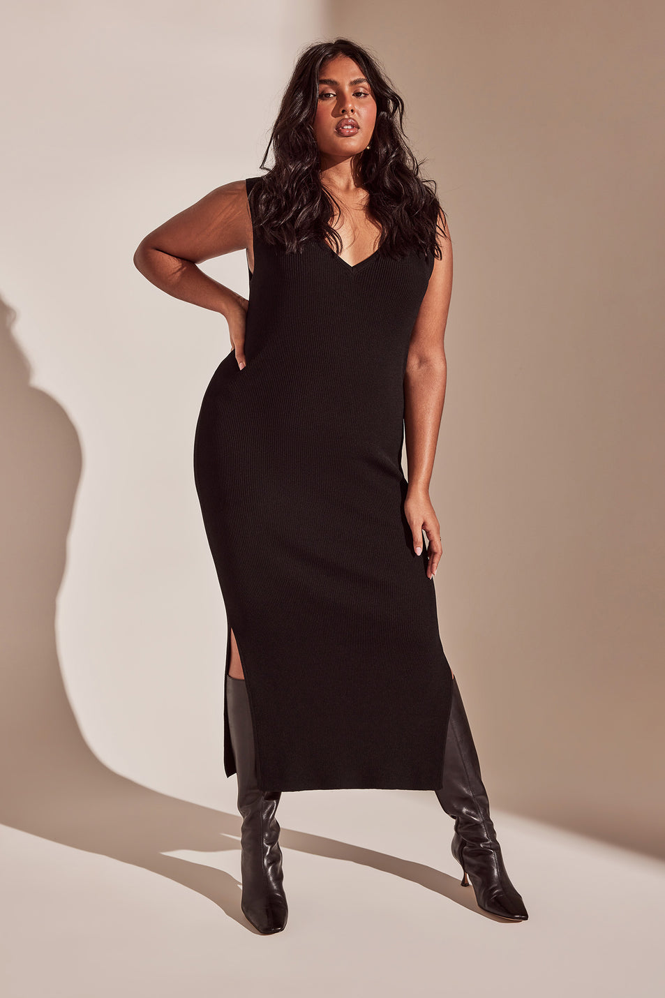 RIB V NECK DRESS