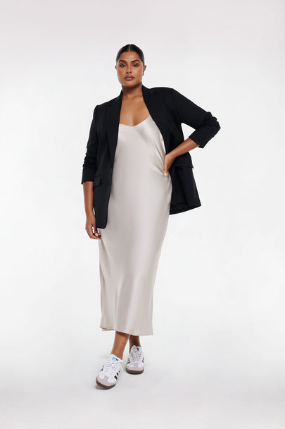 Delivering fluid movement and a luxurious look, Intimo's 100% Silk fabric skims the silhouette for a flattering drape and fit. With a lustrous hand feel and smooth glossy finish, silk offers a lightweight and breathable fabric with thermoregulation properties suitable for wear at every season.
