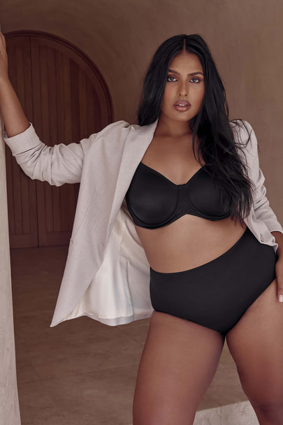 - Clean finishes on cup and band for smooth look beneath clothing