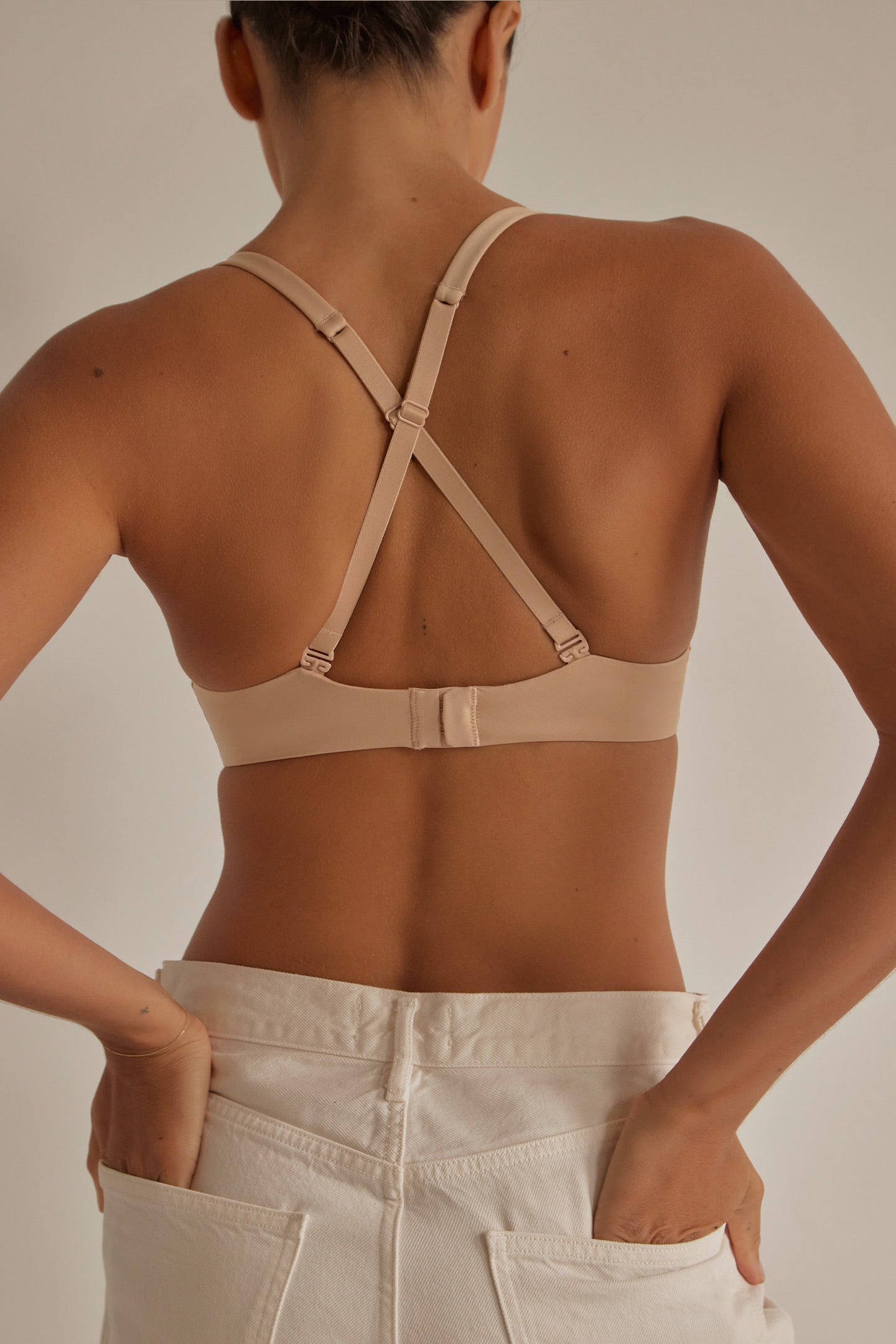 - Clean finish neckline, band and straps for a seamless look beneath clothing